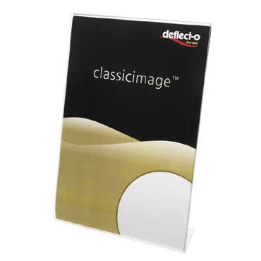 Portafotos en forma de "L" fabricado en plástico transparente de alta resistencia enformato DIN A-5 vertical. Medidas: 40 x 150 x 215 mm. Marca Archivo 2000. Referencia DE47501TP.